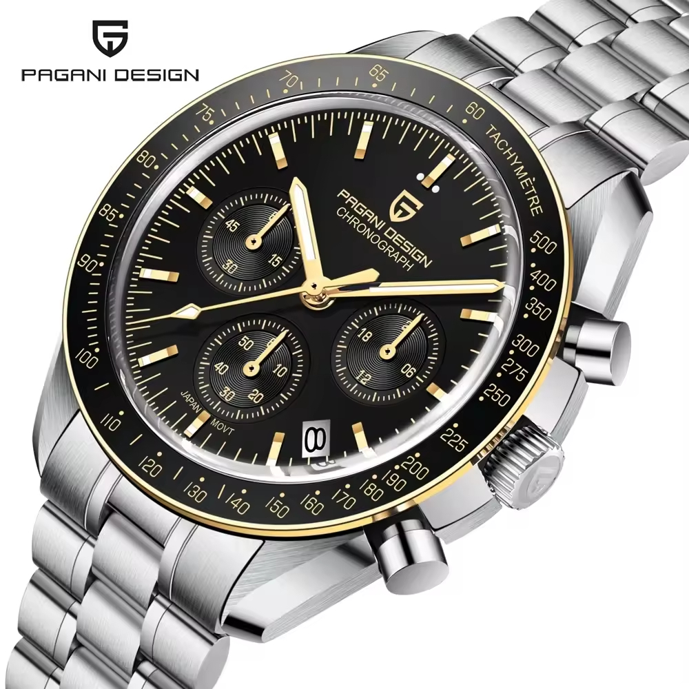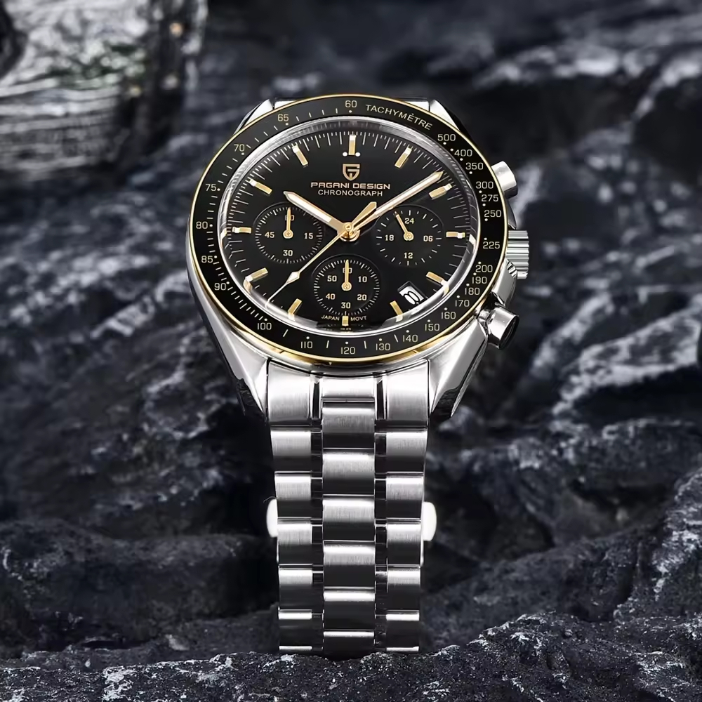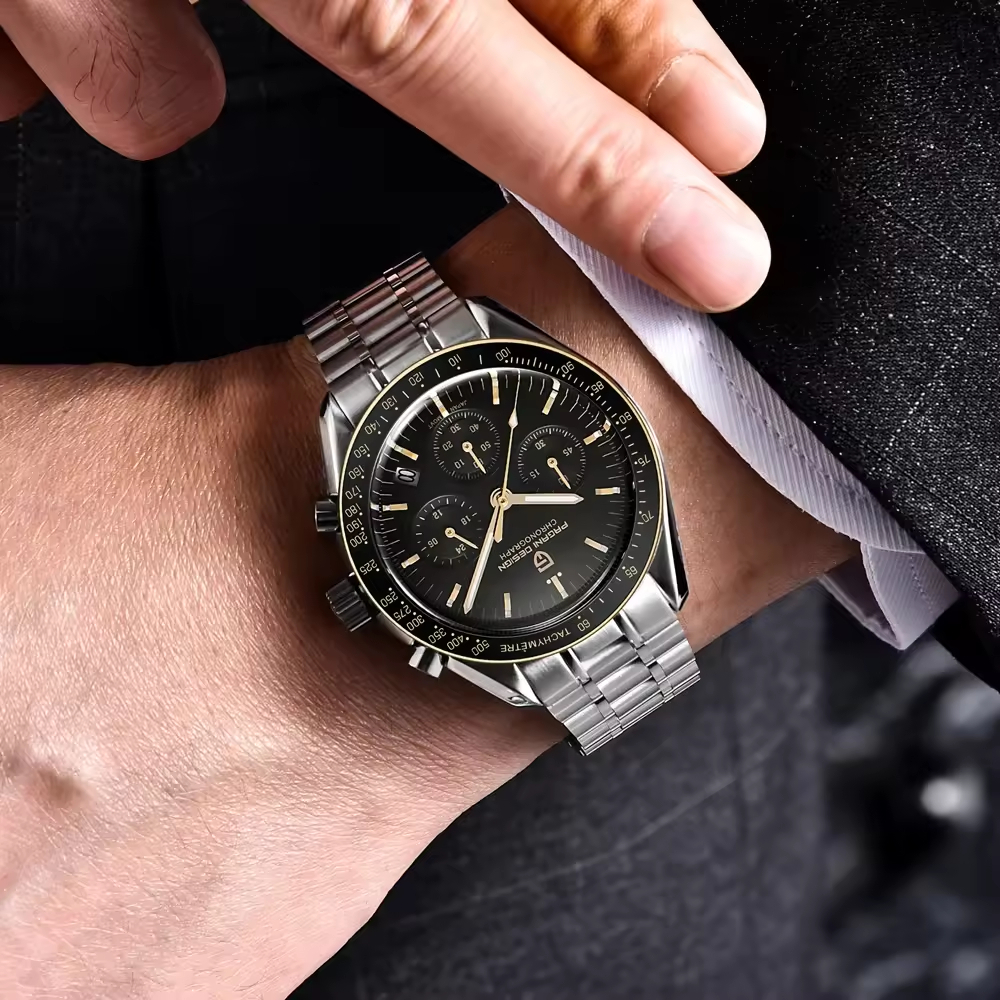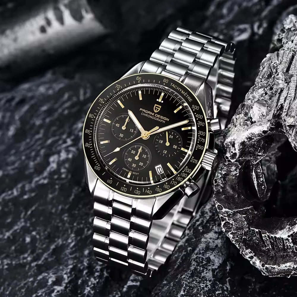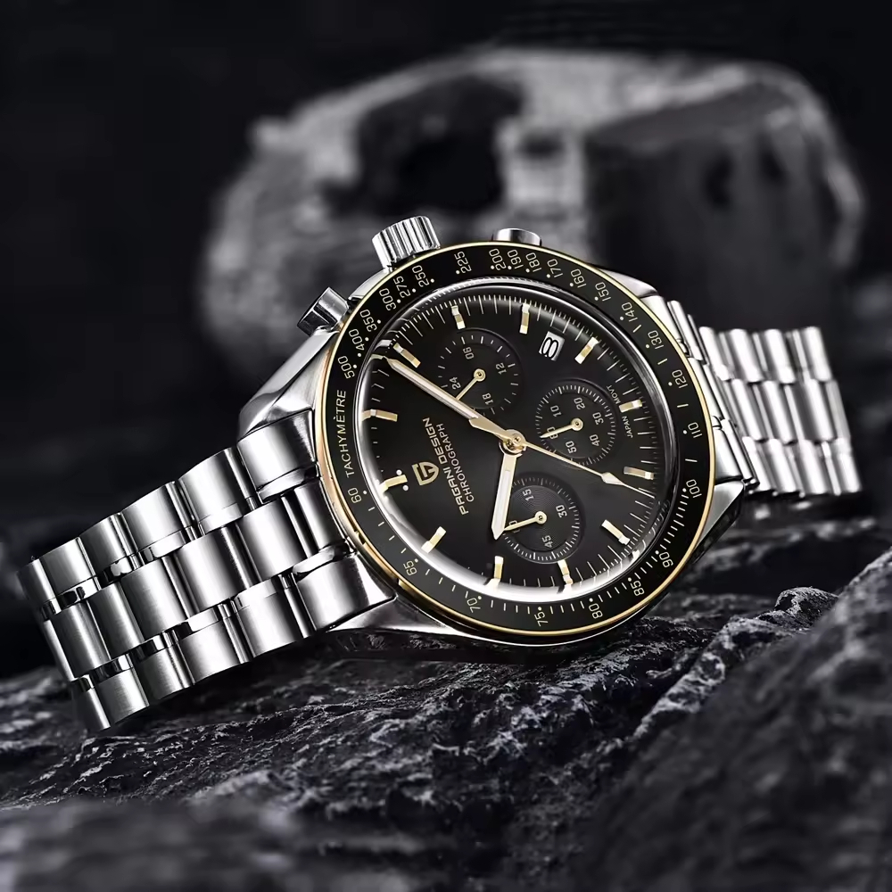 PD-1701 Gold Speedmaster Moonwatch Seiko VK63 Chronograph Quartz Watch