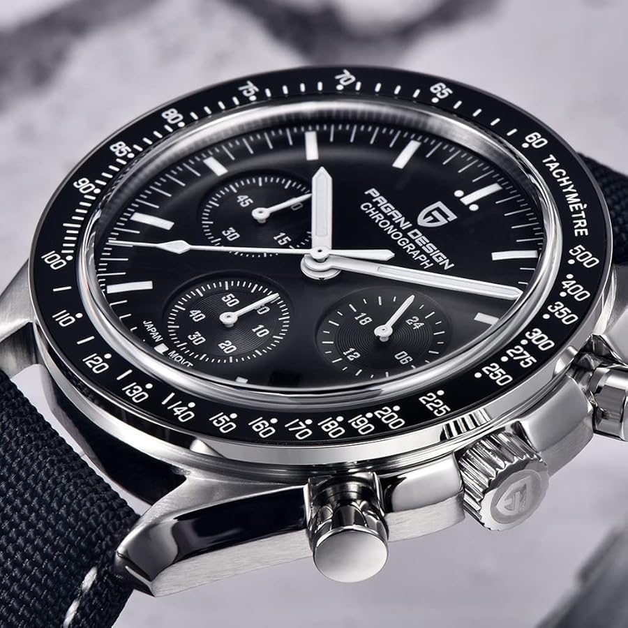 PD-1701 Rubber Black Speedmaster Moonwatch Seiko VK63 Chronograph Quartz Watch